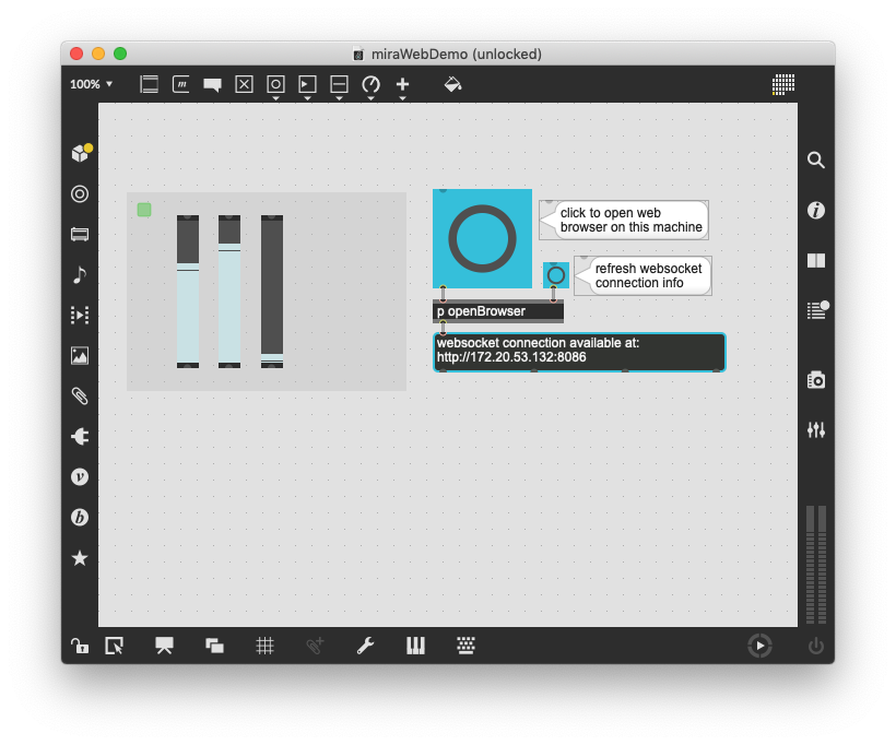 • Place a miraweb over the interface objects in your patch